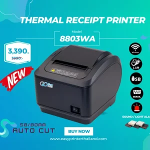 - รองรับการพิมพ์กระดาษสติ๊กเกอร์ความร้อนทั้งแบบม้วนและพับ(ตั้งนอกตัวเครื่อง)