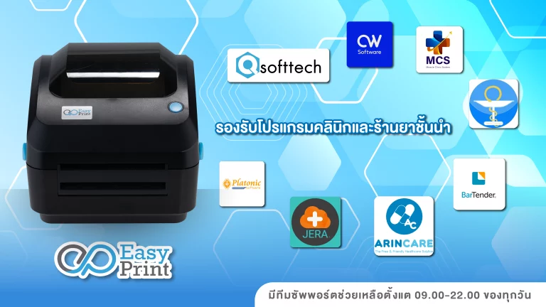 เครื่องพิมพ์ฉลากยา Easyprint ใช้กับโปรแกรมร้านยา โปรแกรมคลินิคชั้นนำได้ ใช้ได้กับโปรแกรมยาชั้นนำทั่วไป ความสามารถนี้เป็นผลจากการวิจัยและพัฒนาที่ครอบคลุม โดยทีมงานได้ทำการทดสอบกับโปรแกรมยอดนิยมในตลาดไทยและต่างประเทศ เพื่อให้มั่นใจว่าการทำงานร่วมกันจะเป็นไปอย่างสมบูรณ์